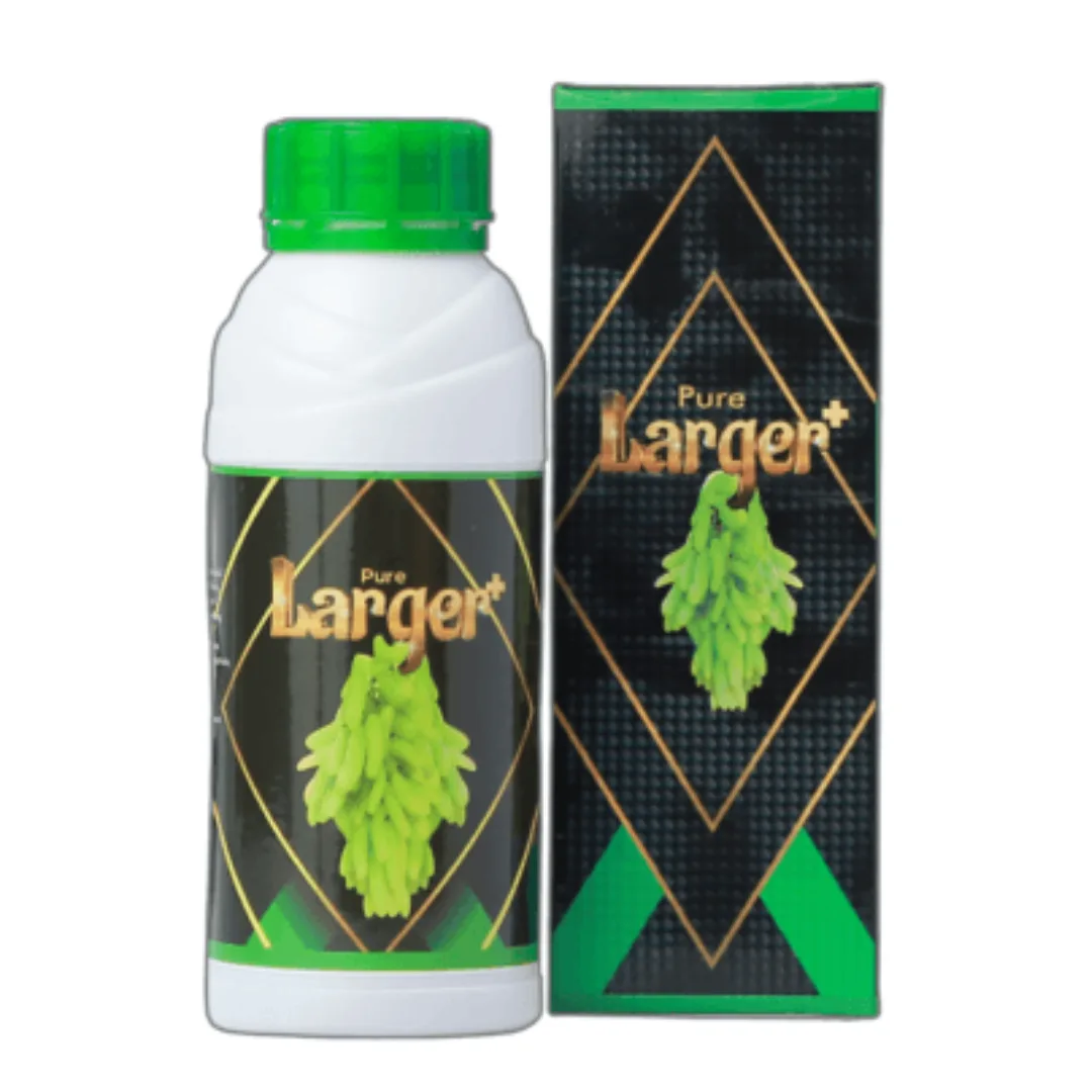 Pure Larger plus is an organic fruit enhancer designed to improve the quality of fruits, vegetables, and flowers. It promotes cell elongation, leading to increased fruit size, luster, and overall quality. It is particularly effective for elongation in grapes, vegetative growth in bananas, and stem elongation in cut flowers.